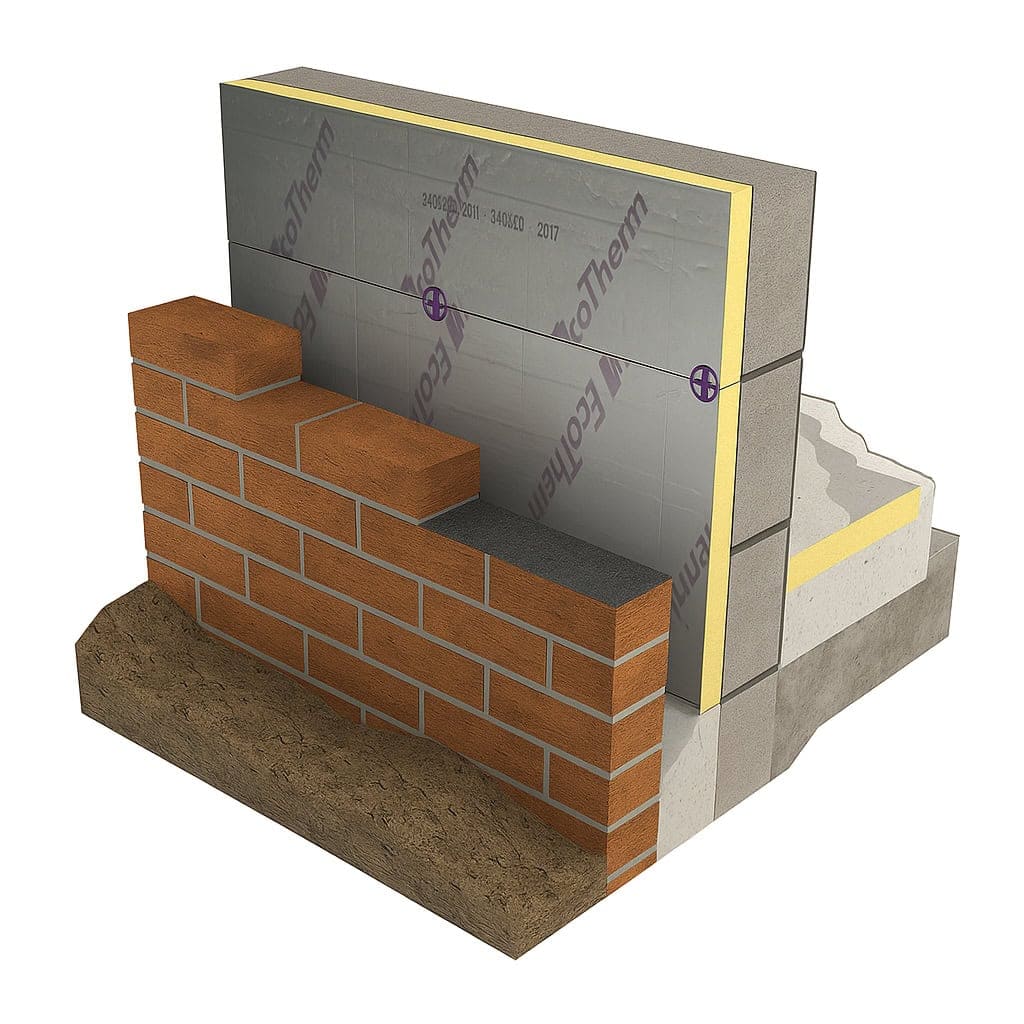 Ecotherm Eco Cavity Insulation Board is a fibre free rigid polyisocyanurate (PIR) insulation core with aluminium foil composite to both sides. The boards are conveniently sized to co-ordinate with brick and block dimensions and allow the insertion of wall ties at the appropriate spacing.