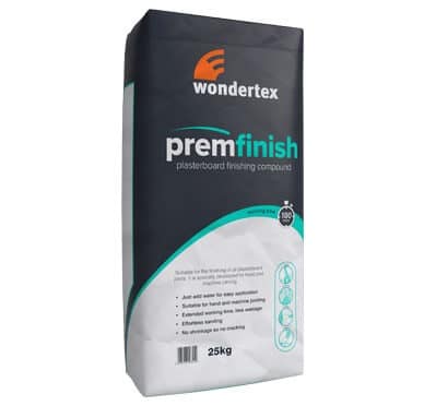 Wondertex prem finish is suitable for the finishing of all plasterboard joints. It is specially developed for hand and machine jointing and may be referred to in the marketplace as joint cement.
