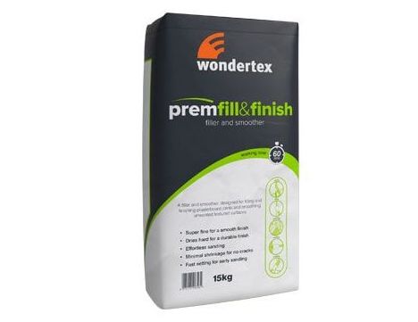 Wondertex prem fill & finish is a filler and smoother, designed for filling and finishing plasterboard joints and smoothing unwanted textured surfaces.